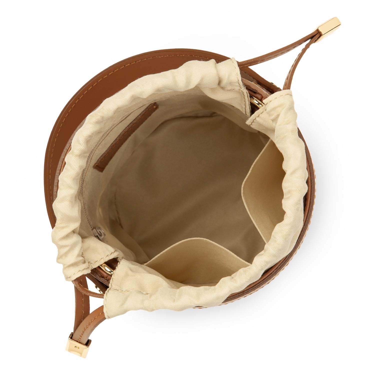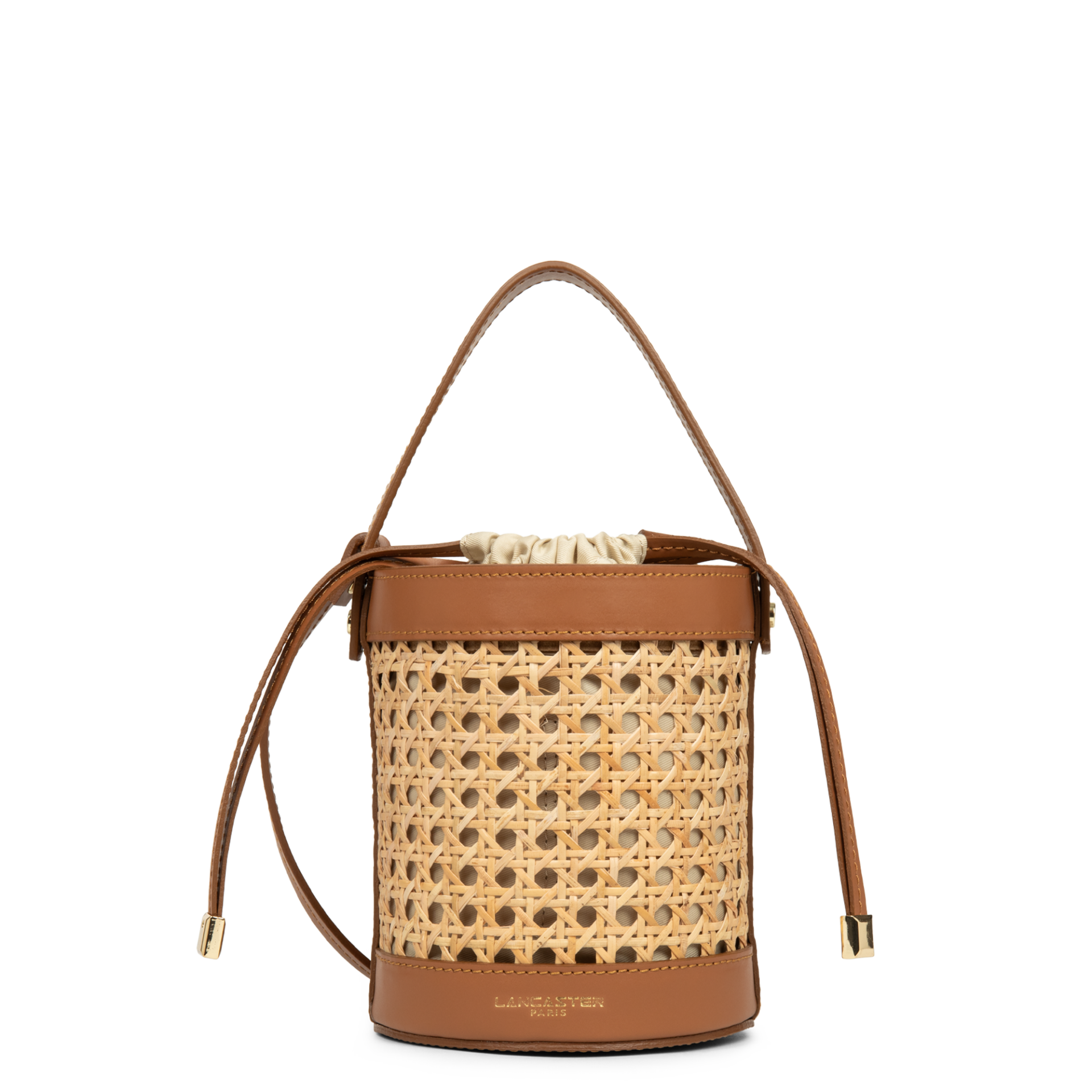 Petit sac seau Lancaster cannage rotin camel