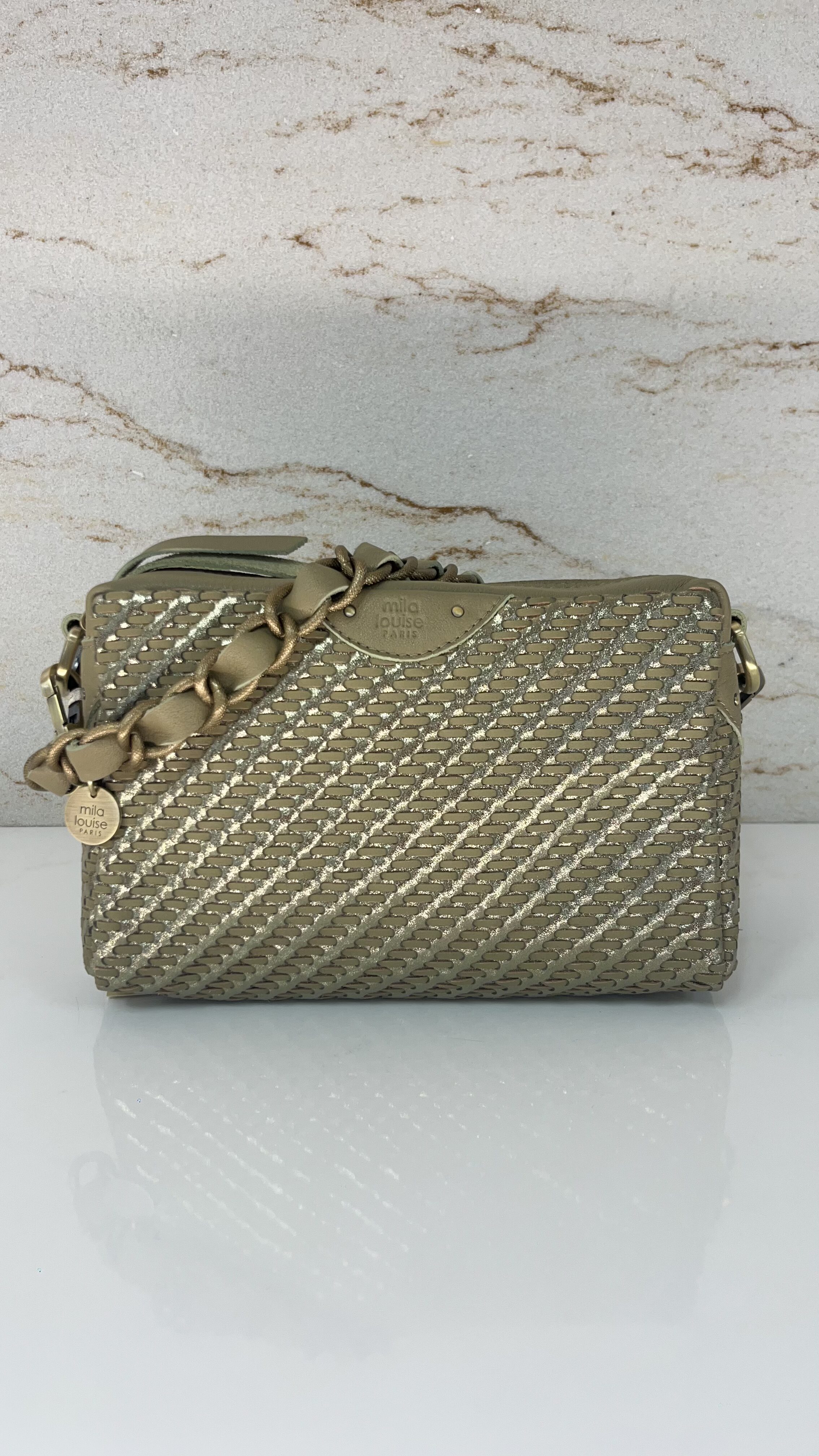 Sac besace Mama MY cuir tressé Mila Louise oyster