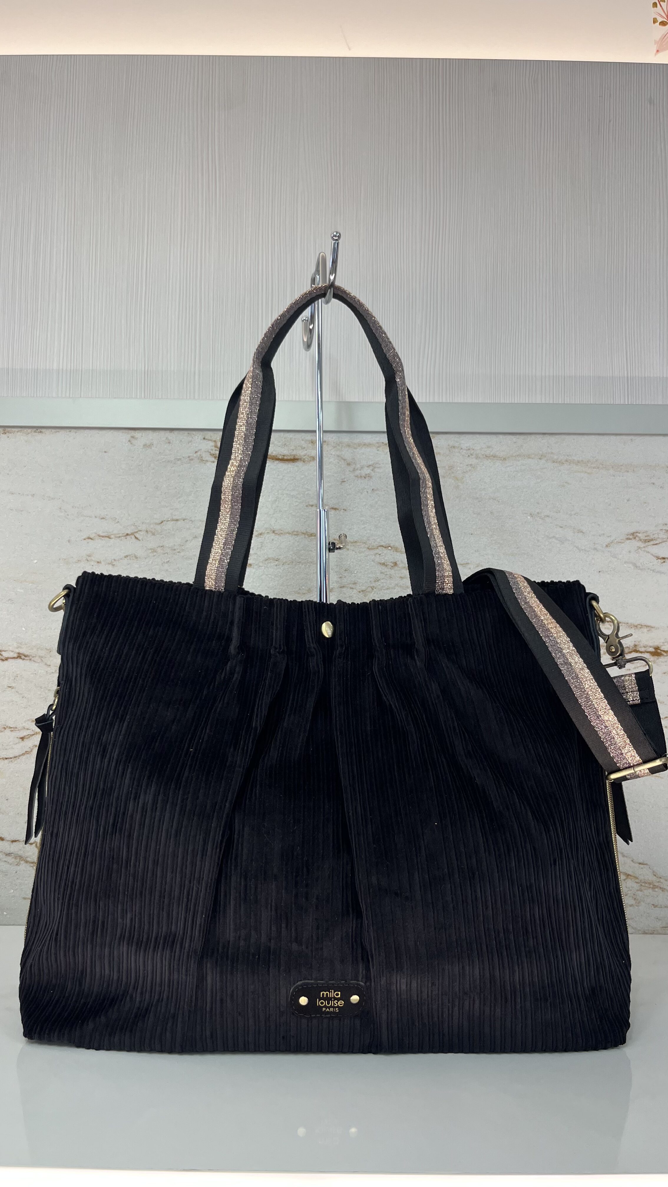 Sac cabas Maena en velours côtelé Mila Louise noir
