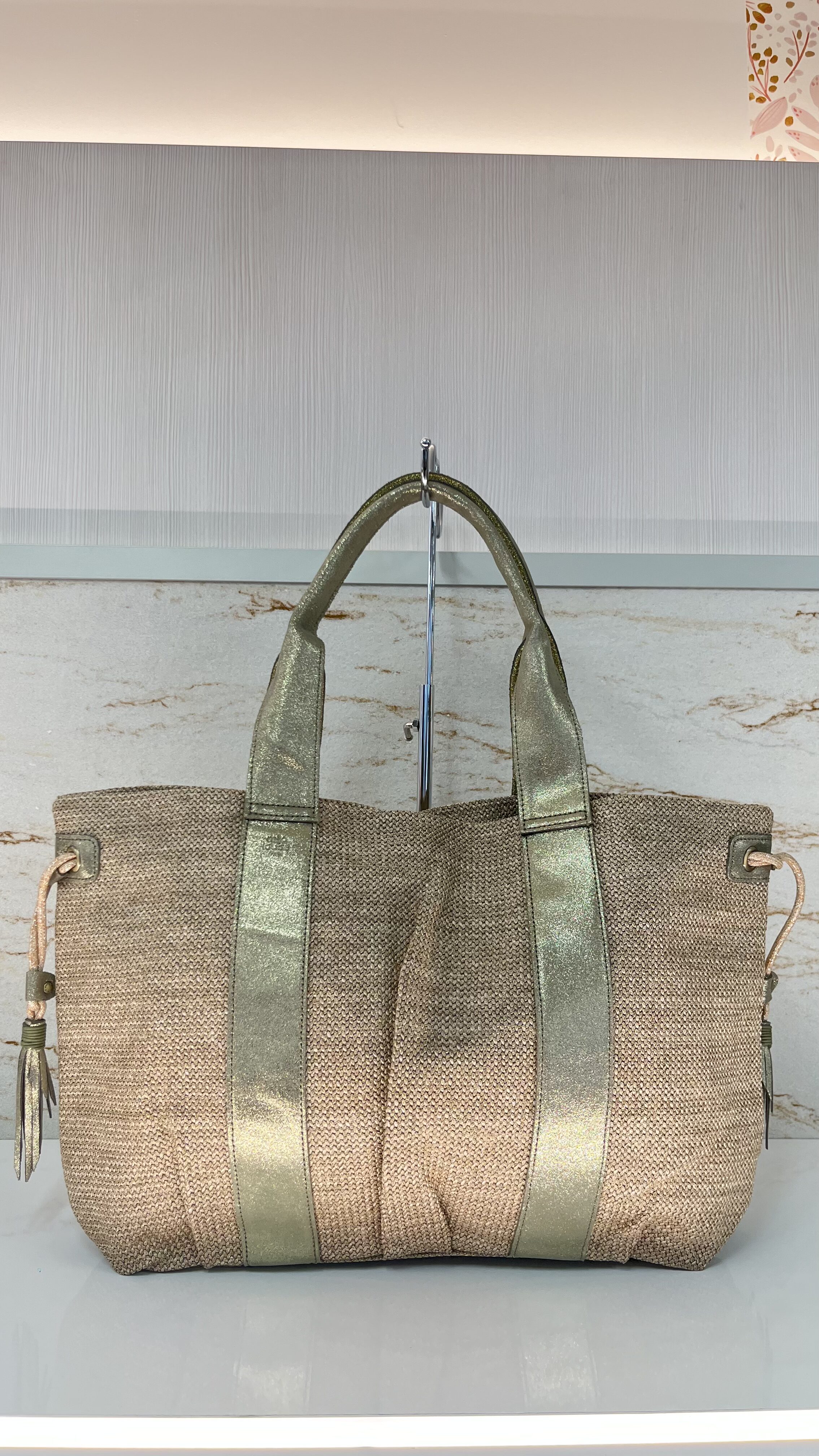 Avec ses dimensions de 32 cm x 52.5 cm x 10.3 cm, ce sac Prudy offre une belle capacité de rangement. Ses anses doubles assurent un porté confortable à l’épaule, parfait pour les journées chargées comme pour les moments de détente. Ce modèle de la ligne Prudyse distingue par son allure sobre et polyvalente.