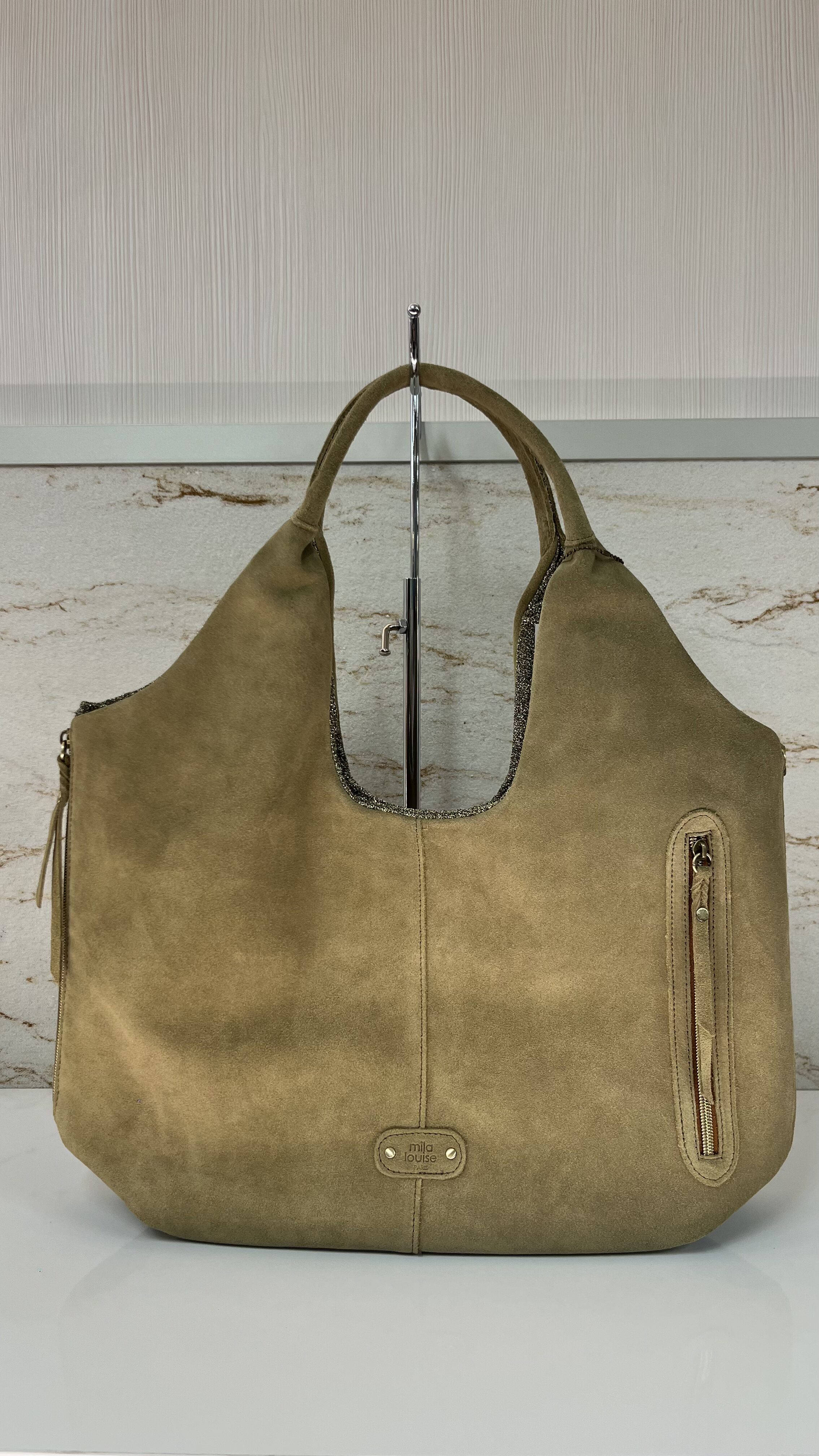 Sac hobo Philae V croûte de cuir Mila Louise oyster
